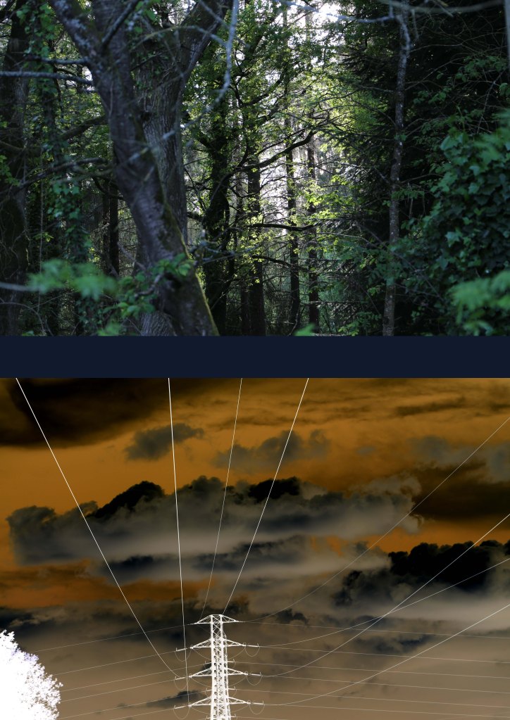 La photographie est un art qui permet de capturer un instant se dérobant au regard. Elle permet de figer un mouvement, de mettre en lumière un moment magique où l’invisible devient visible. Un nuage se confond avec la fumée, câbles électriques se mêlent aux branches des forêts, les matières s’entremêlent, les regards se croisent, les masques se révèlent. J’affectionne particulièrement les portraits, dans ma pratique, il s’agit de graver un souvenir lorsque la personne ne se doute pas qu’elle est regardé. Si en plus la photographie révèle à cette personne une beauté qu’elle ne soupçonnait pas, j’en suis plus que ravie. Vous ne trouverez pas d’exemple de ces portraits, pour des raisons, comme vous devez vous en douter, de pudeur vis à vis des personnes concernées. La matière photographique est très importante afin de nourrir mes projets d’illustrations et de montage.